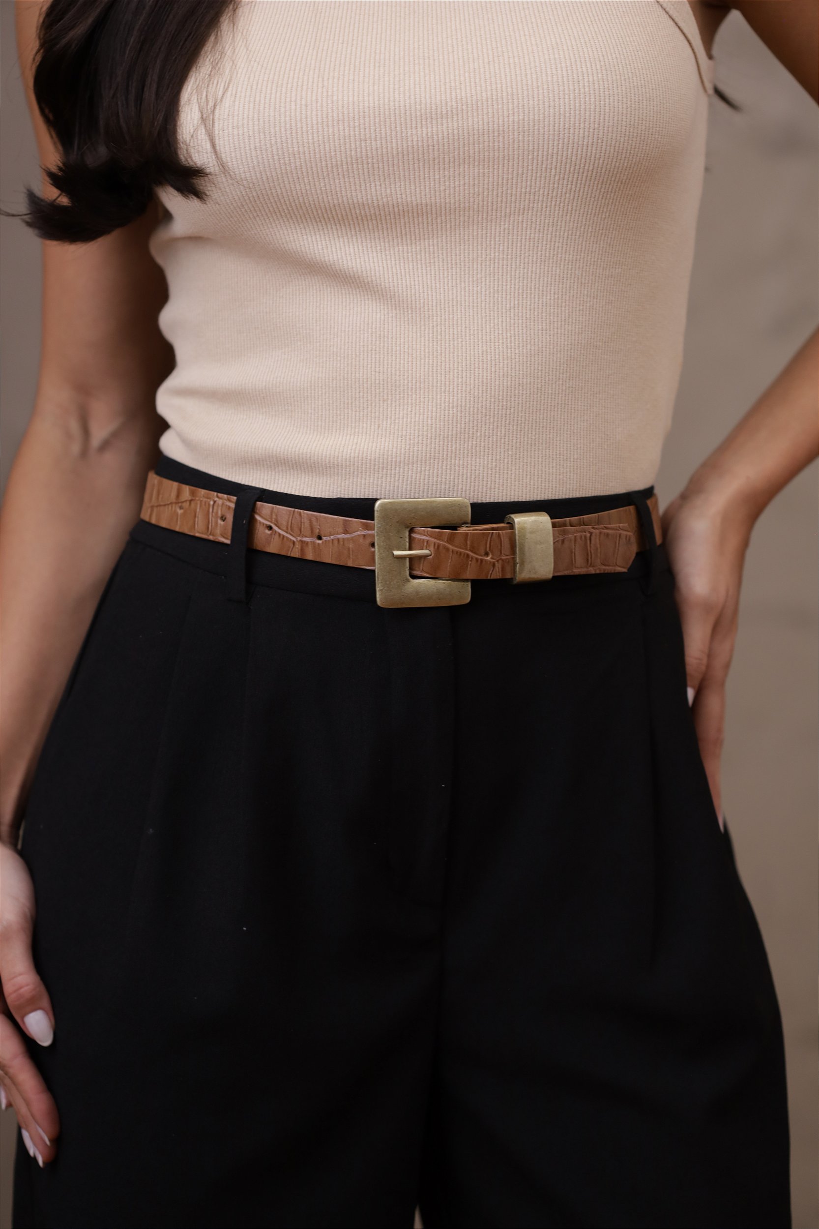CINTO ESTELA CARAMELO - COURO LEGÍTIMO CROCO - LARGURA DO CINTO 2,0CM