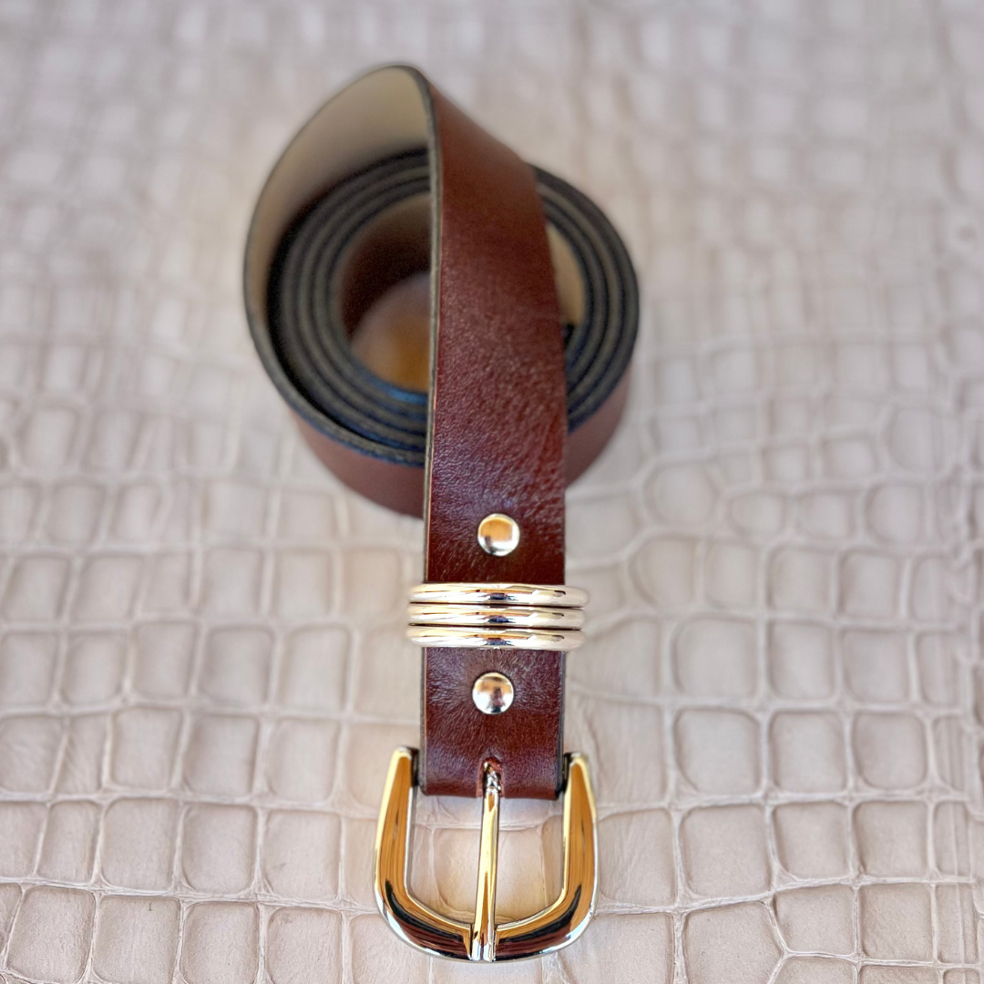CINTO GABRIELA CHOCOLATE - FIVELA PRATA - COURO LEGÍTIMO - LARGURA DO CINTO 2,5CM